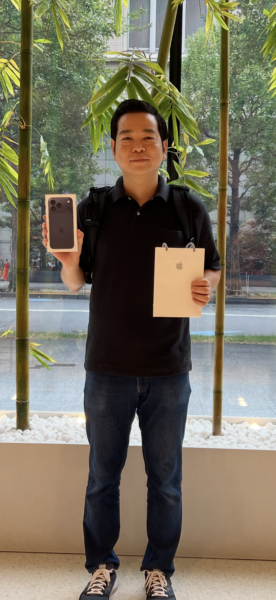※iPhoneの発売日に、iPhone Pro Max(濃い青色です。今回は黒がないので)を大手町のアップルストアで引き取ってきました(受付をしてもらった方に写真を撮ってもらいました)。